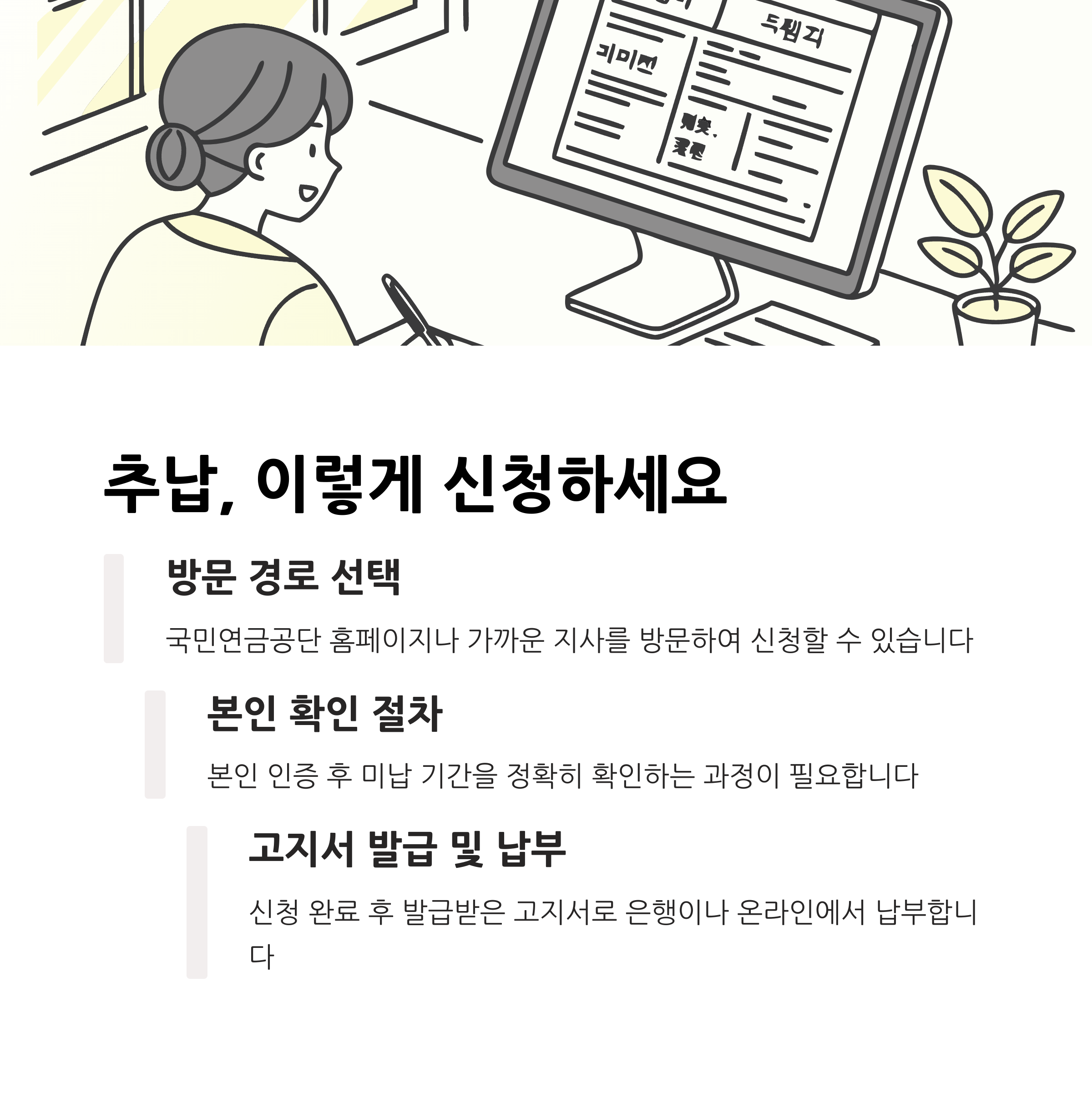 "미납은 단순한 지연이 아닌, 연금 수령 자격 자체에 큰 영향을 줄 수 있어요"