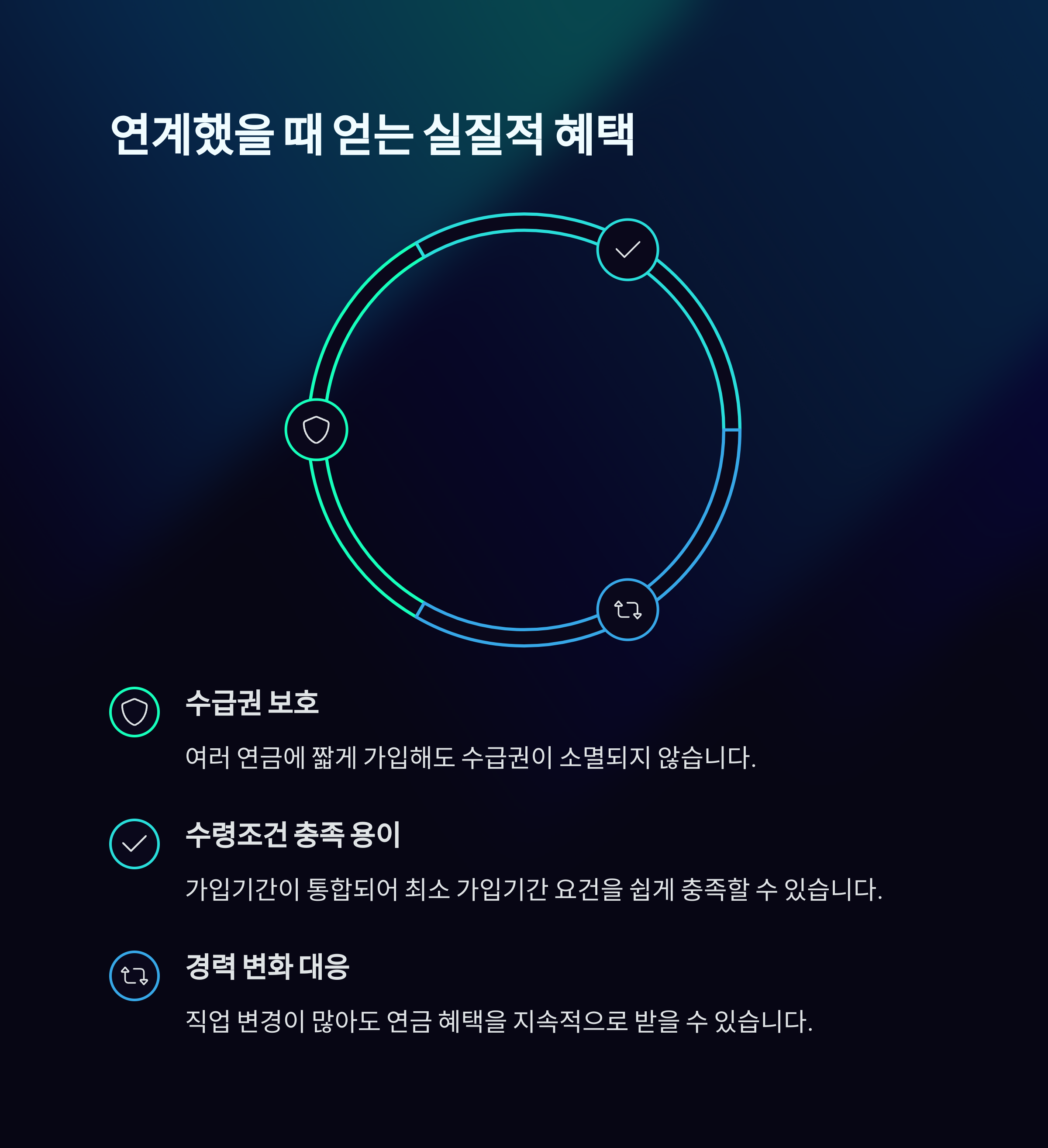 가입기간은 하나로 연결해 연금 수급에 불이익이 없도록 해줍니다" 😊