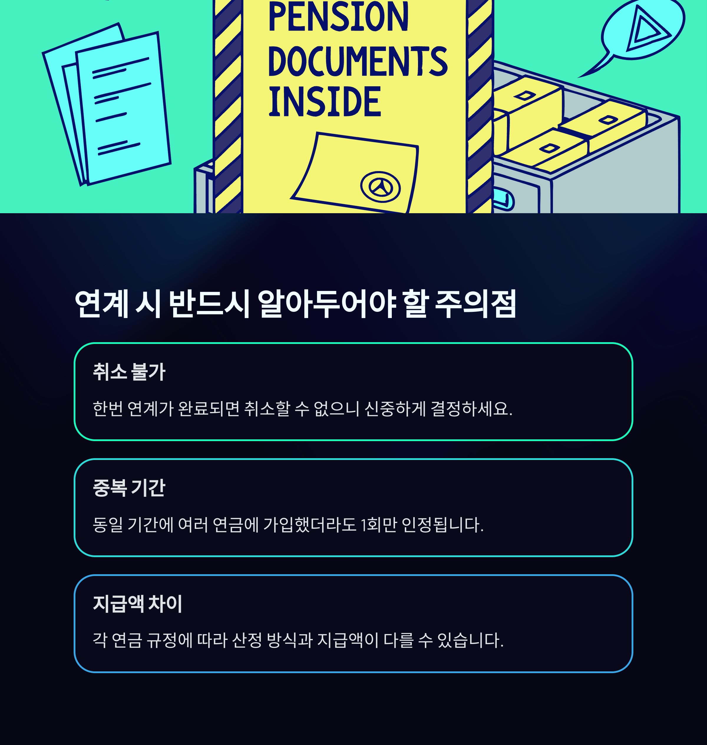- 연계 후에도 연금은 별도 계산, 합산 지급 아님