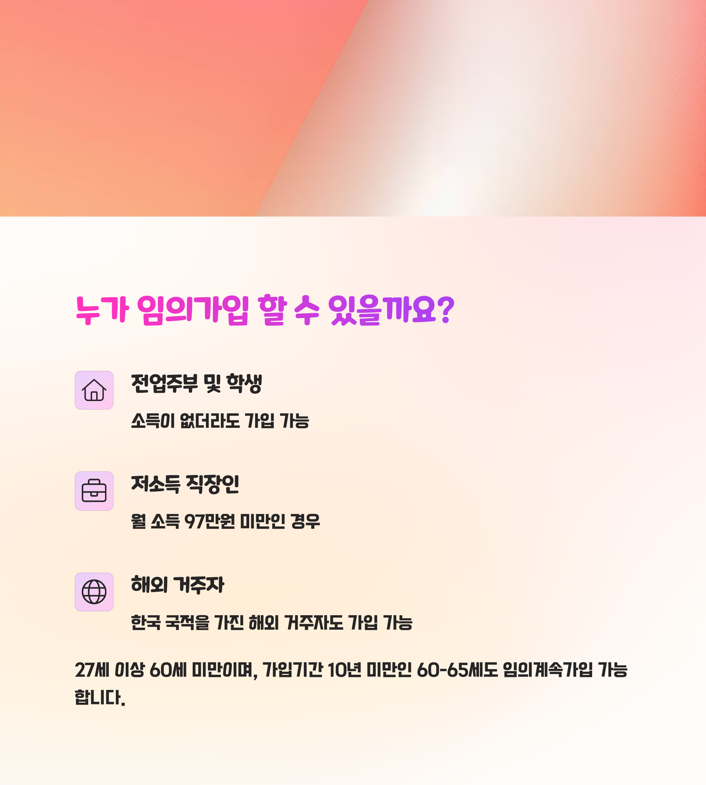 "임의가입은 단기보단 '미래의 안정성'을 위한 투자입니다" 😊