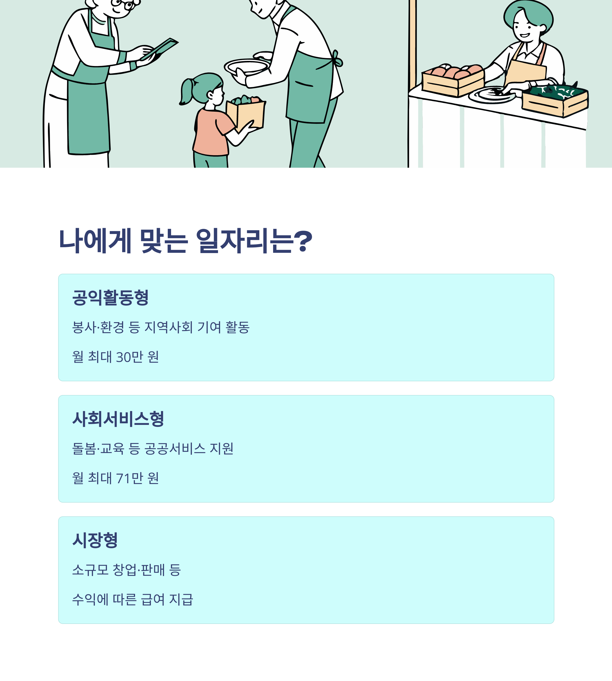 보육시설, 요양기관 등에서 일정 근로 대가를 받고 활동 - 시장형