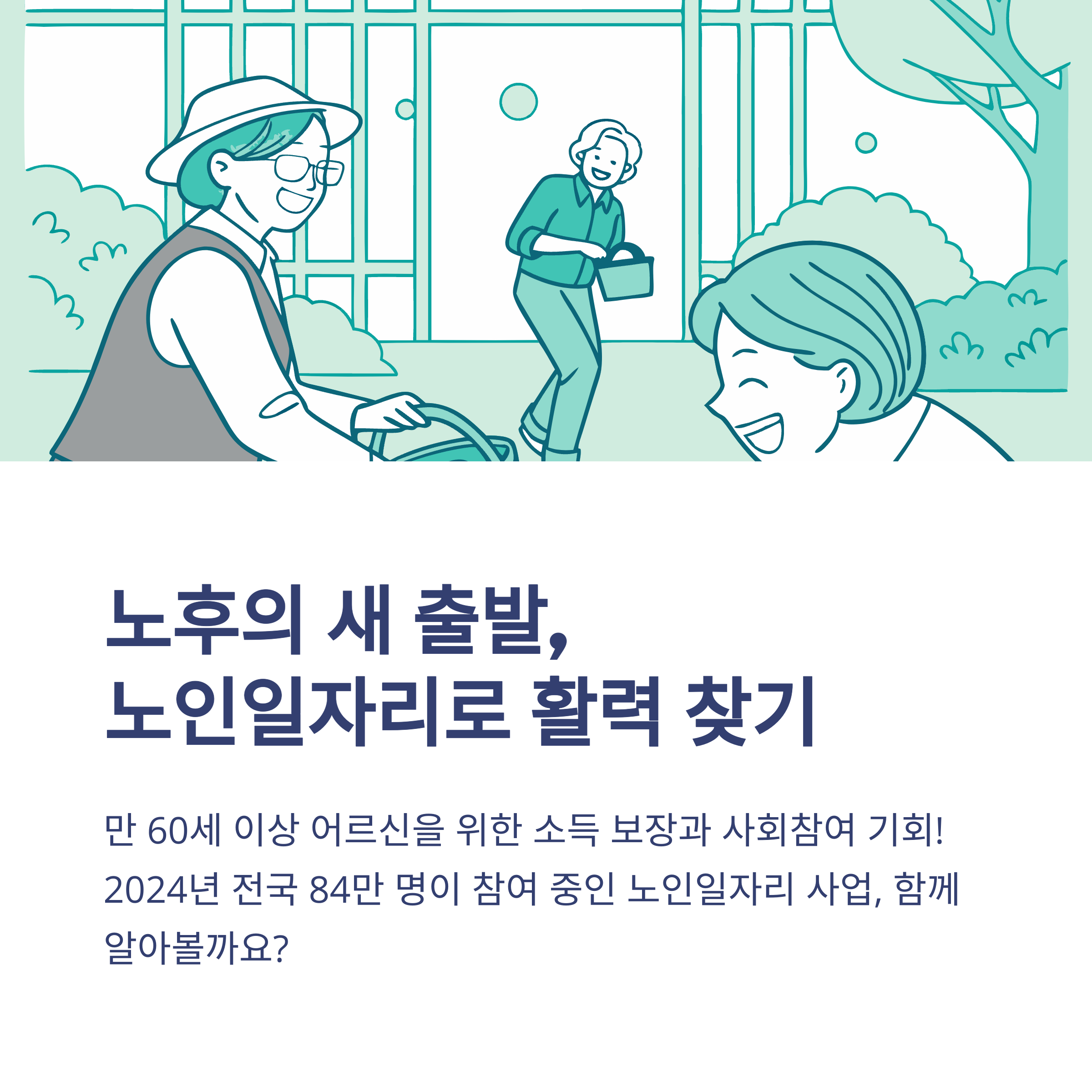 노인일자리 사업은 60세 이상 고령층의 사회 참여와 소득 보전을 지원하는