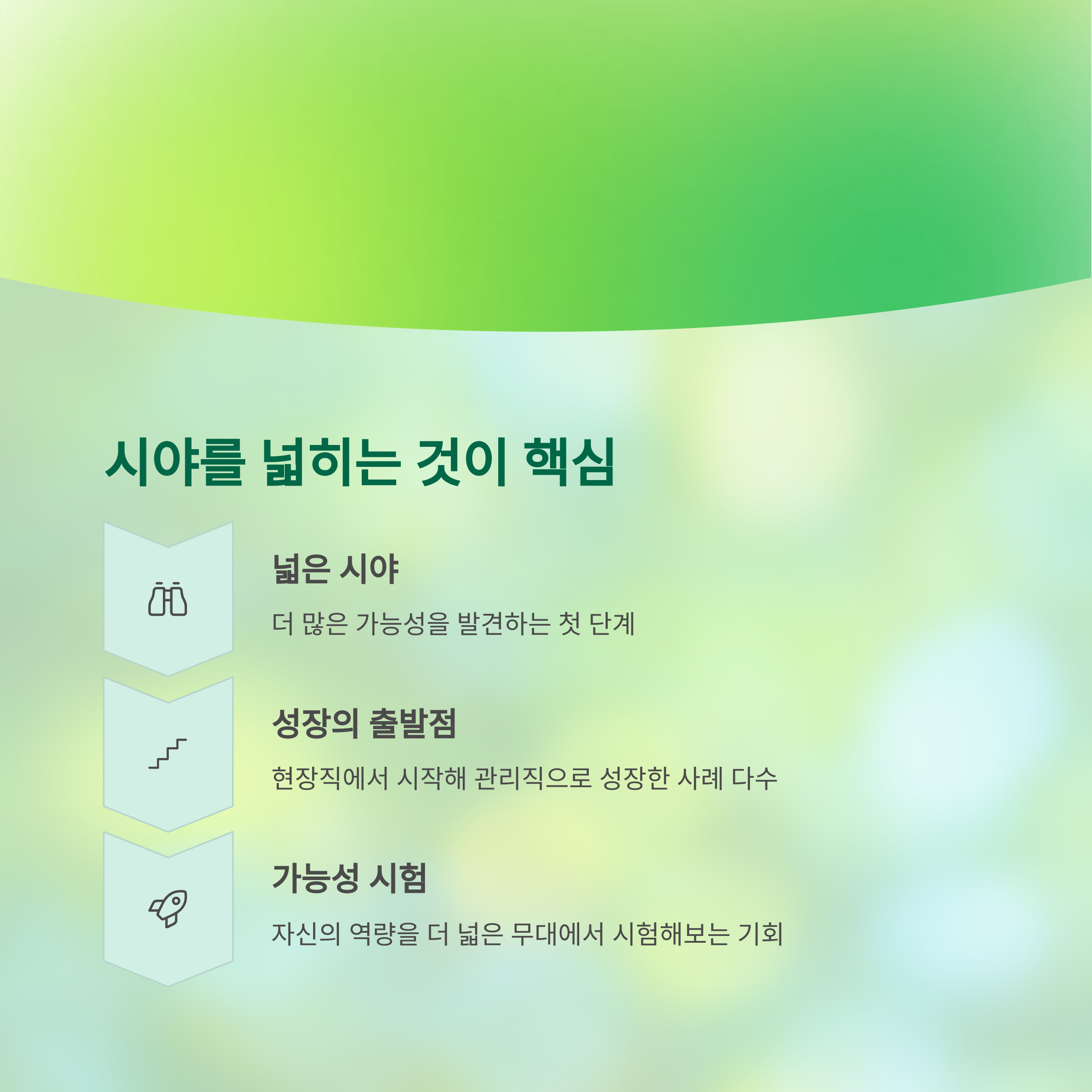 실제로 현장직에서 일하다 경력개발을 통해 관리직으로 성장한 사례도 많습니다. 눈높이를 낮춘 것이 아니라, 성장의 출발선으로 시선을 옮긴 것일 뿐입니다.
