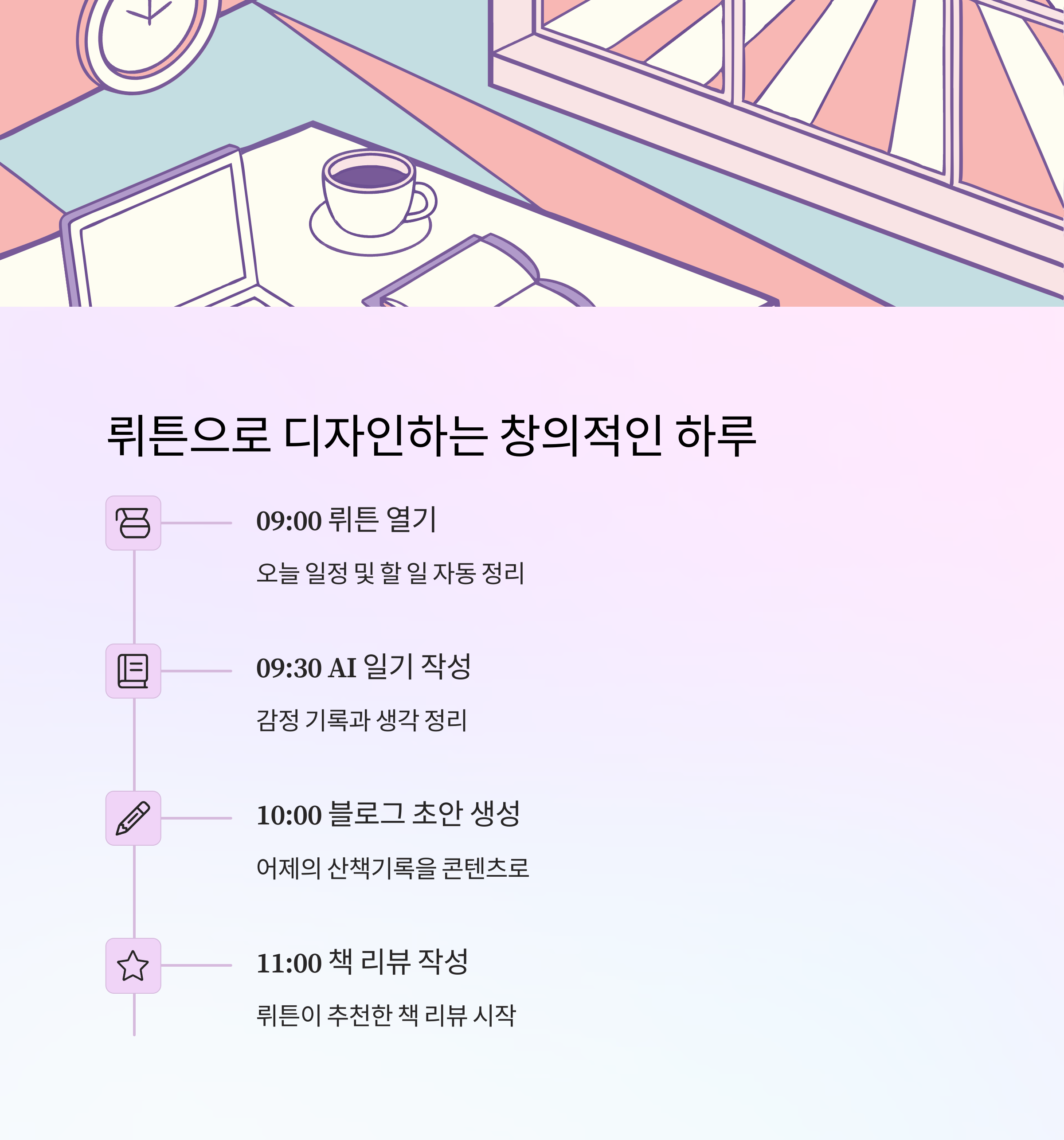 아침 9시, 뤼튼으로 오늘을 디자인하다 (타임라인 형식)