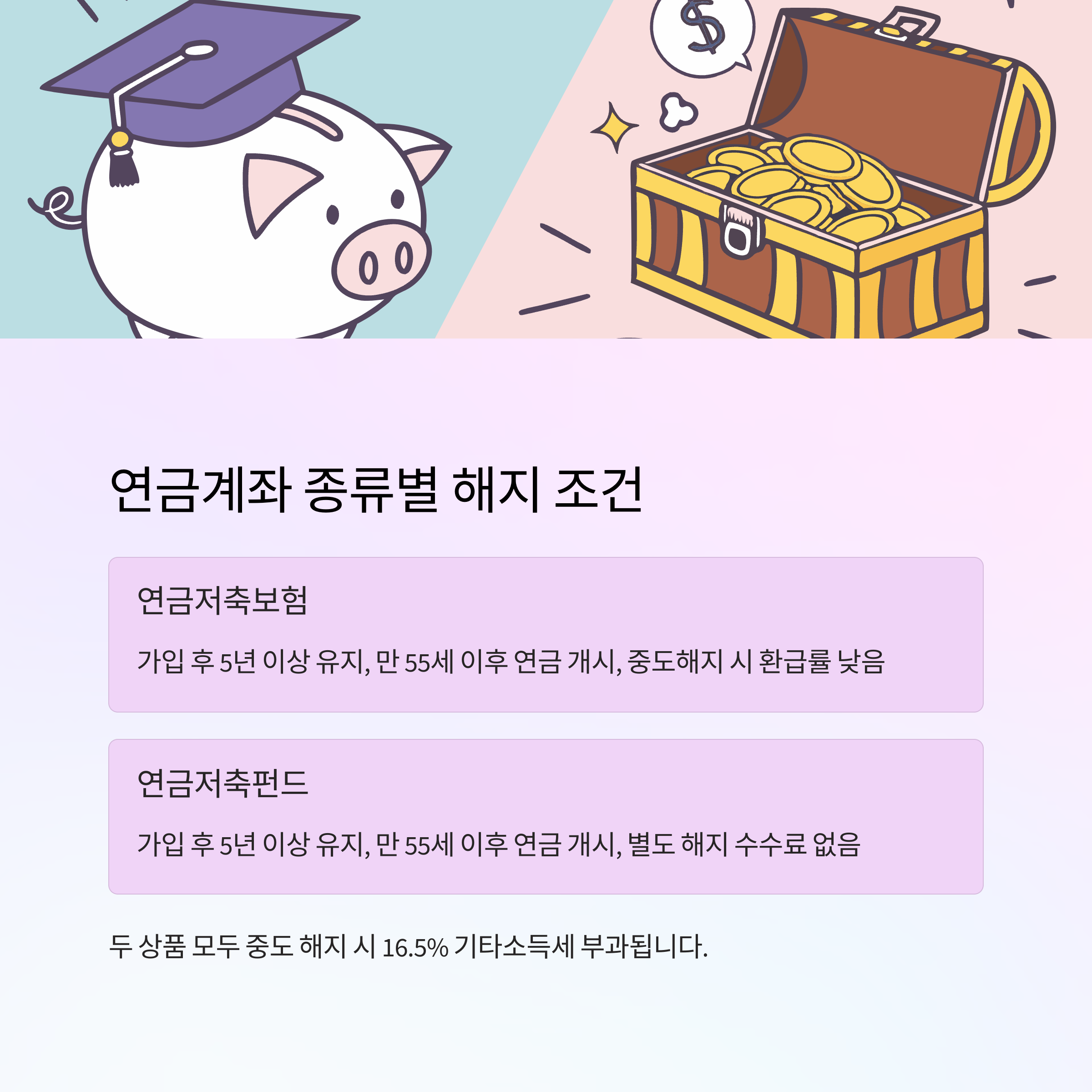 연금계좌 종류에 따라 해지 시 조건이 다릅니다 (표 비교)