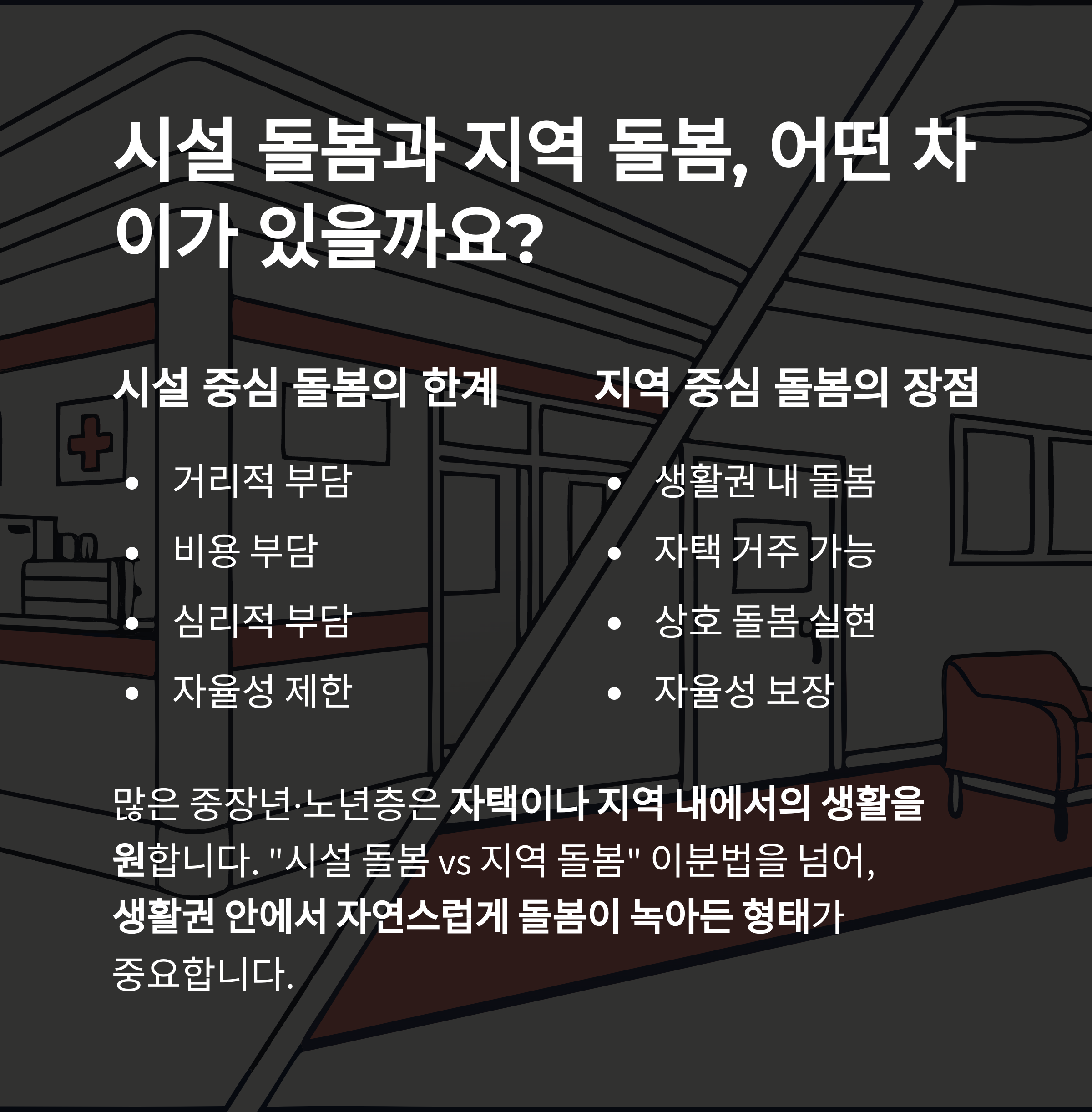 생활권 안에서 자연스럽게 돌봄이 녹아든 형태가 중요합니다.