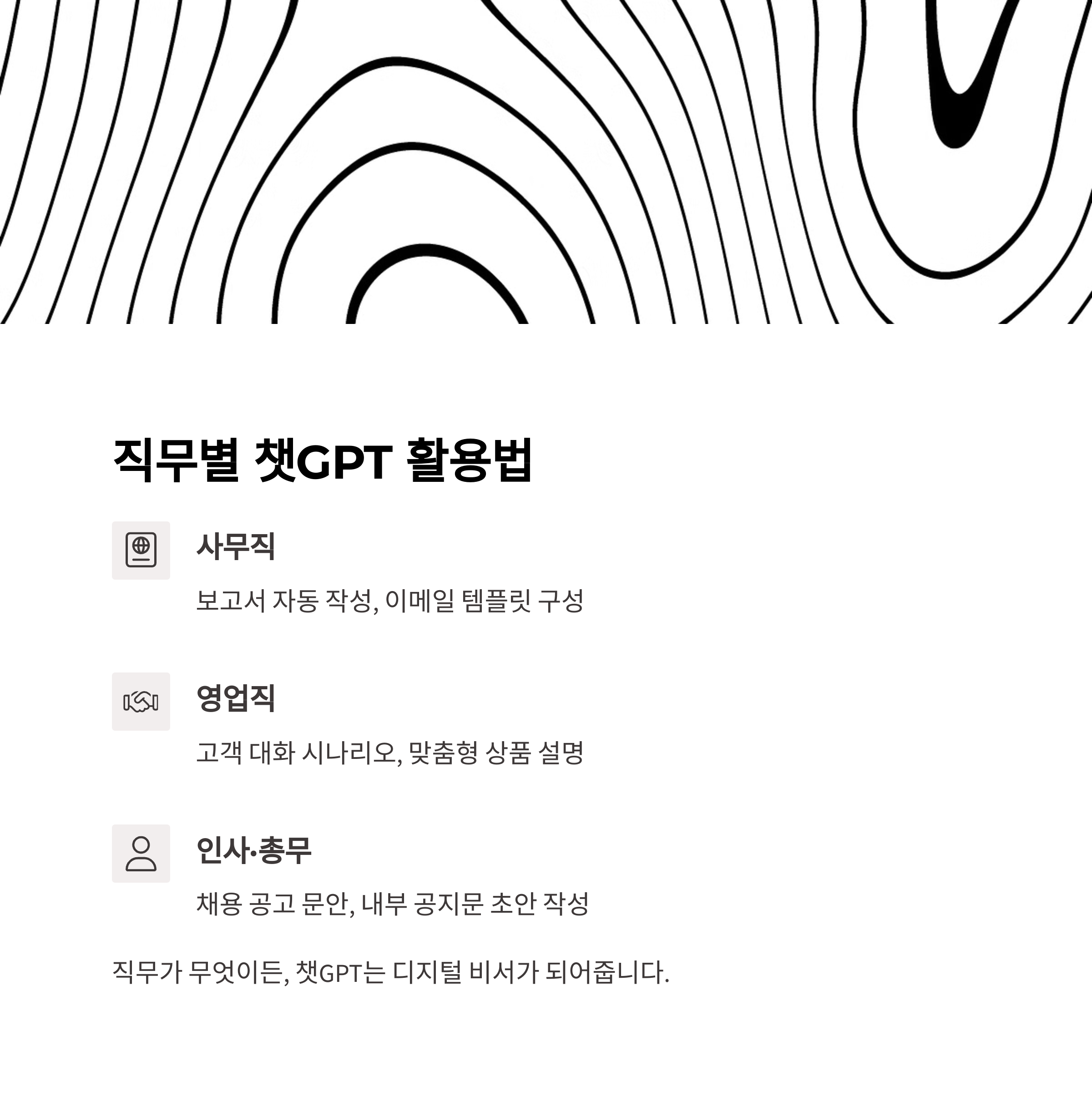 직무가 무엇이든, 챗GPT는 디지털 비서가 되어줍니다.
