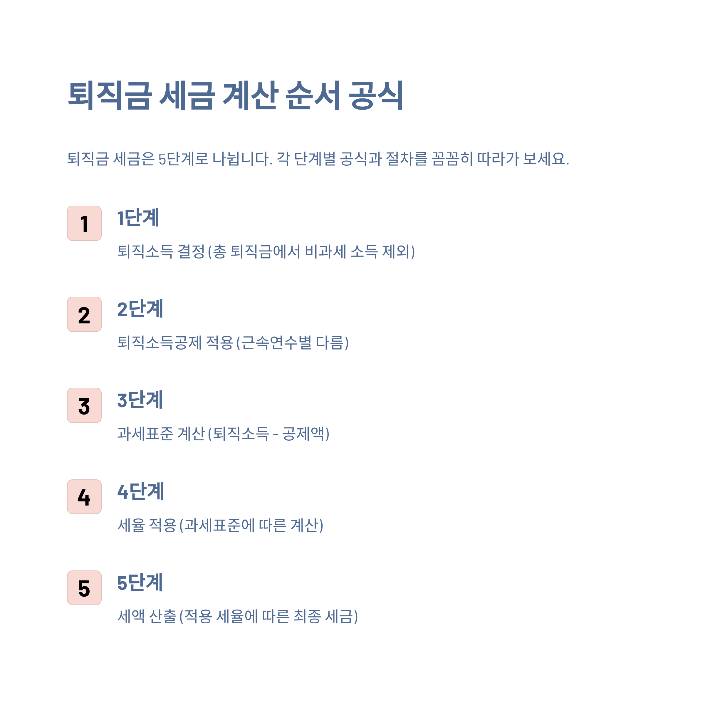 - 퇴직소득공제 차감 → 퇴직소득 산출