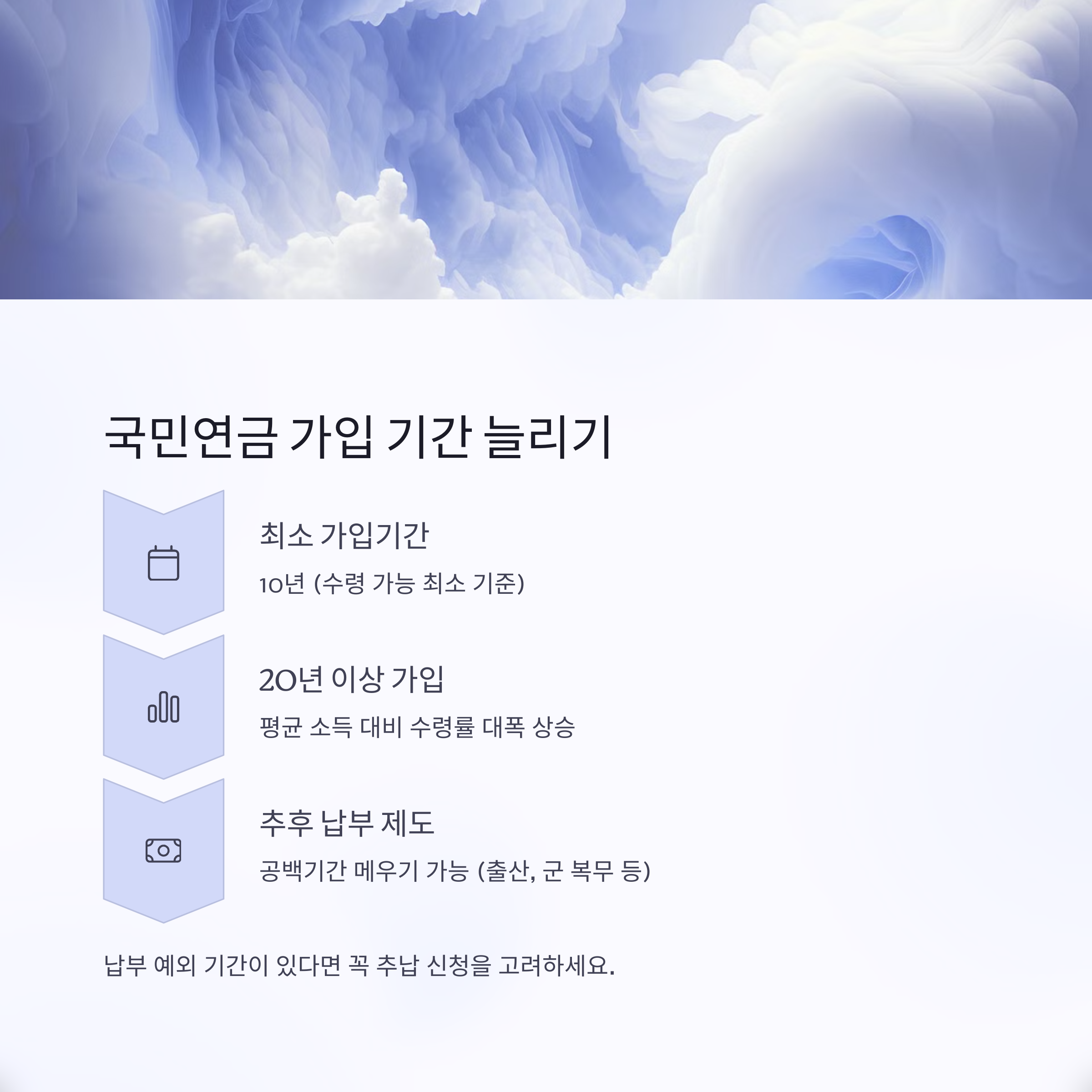 - 최소 가입기간: 10년 (수령 가능 최소 기준)