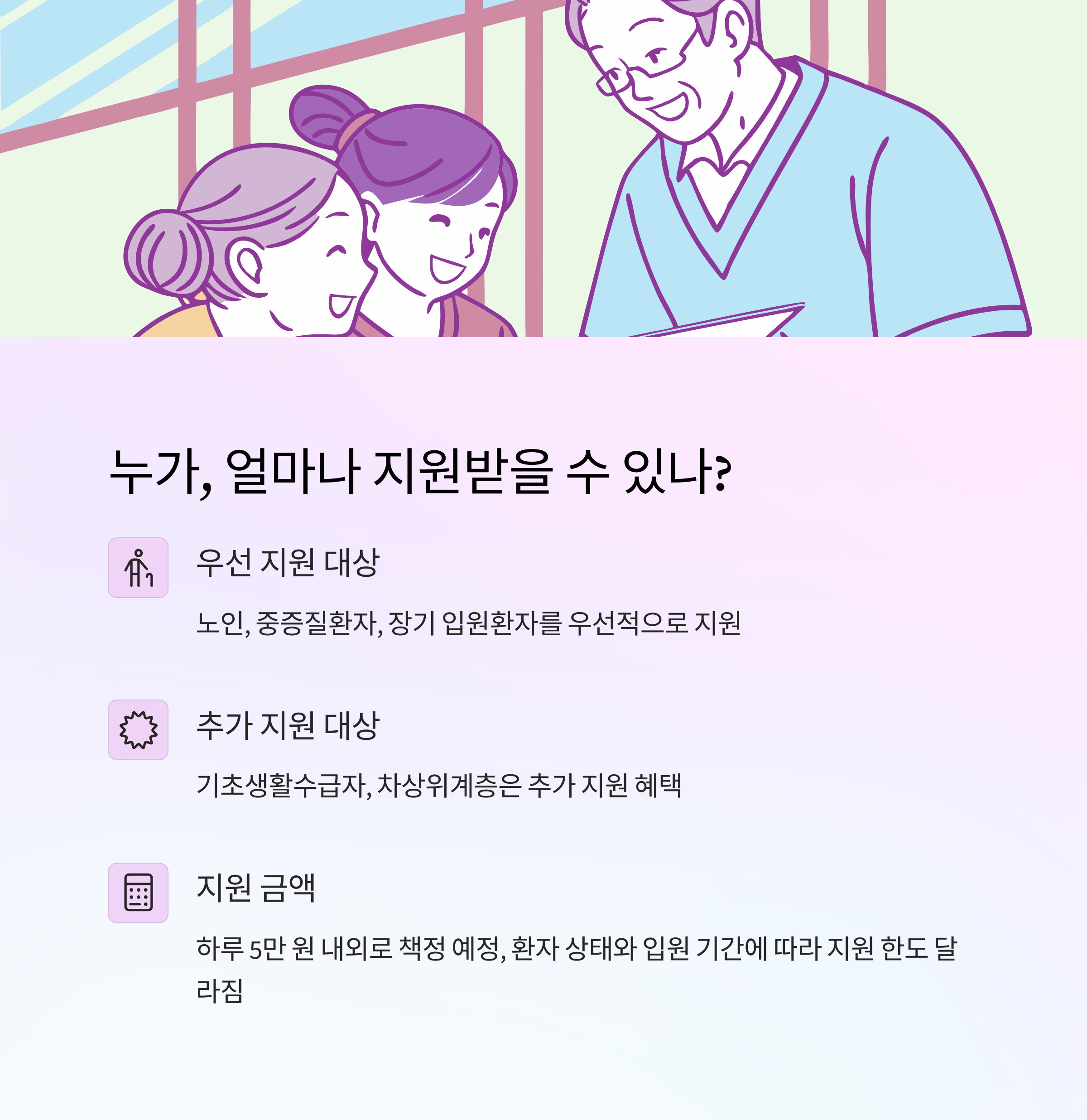 2024년 일부 지역 시범사업이었던 간병비 지원이 2025년부터 전국으로 확대됩니다.
