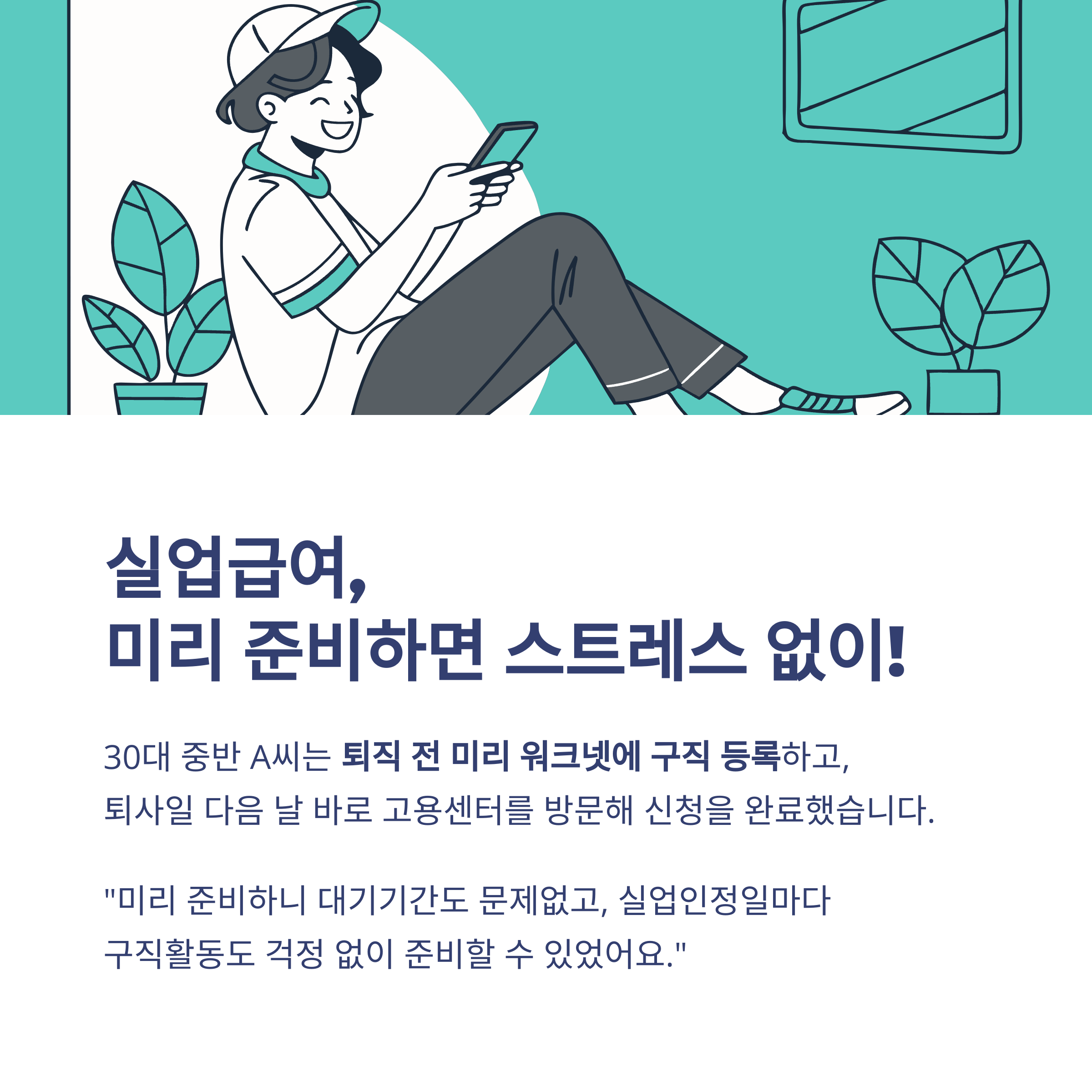 실업인정일마다 구직활동도 걱정 없이 준비할 수 있었어요.”