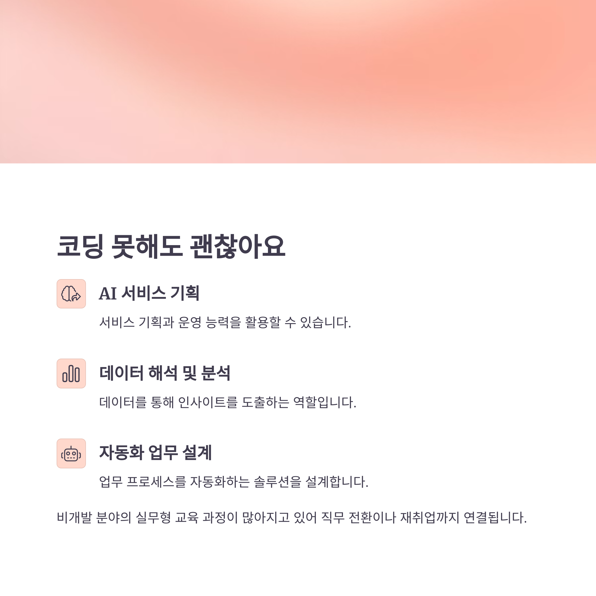 하지만 현실의 SW·AI 융합 교육은 꼭 개발자가 되기 위한 과정이 아닙니다.