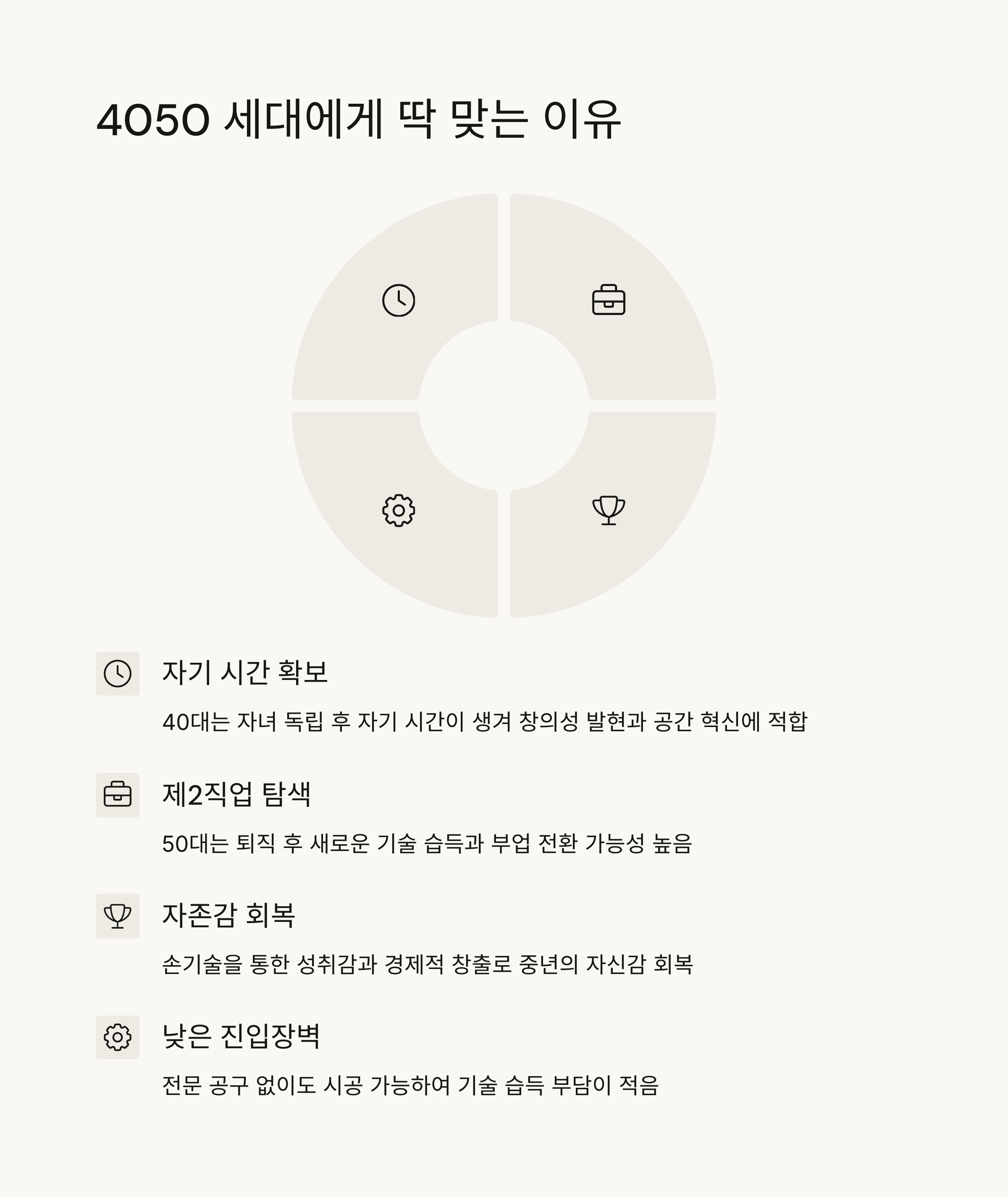중년 이후에는 손기술을 통한 자존감 회복과 경제적 창출이 중요해집니다.