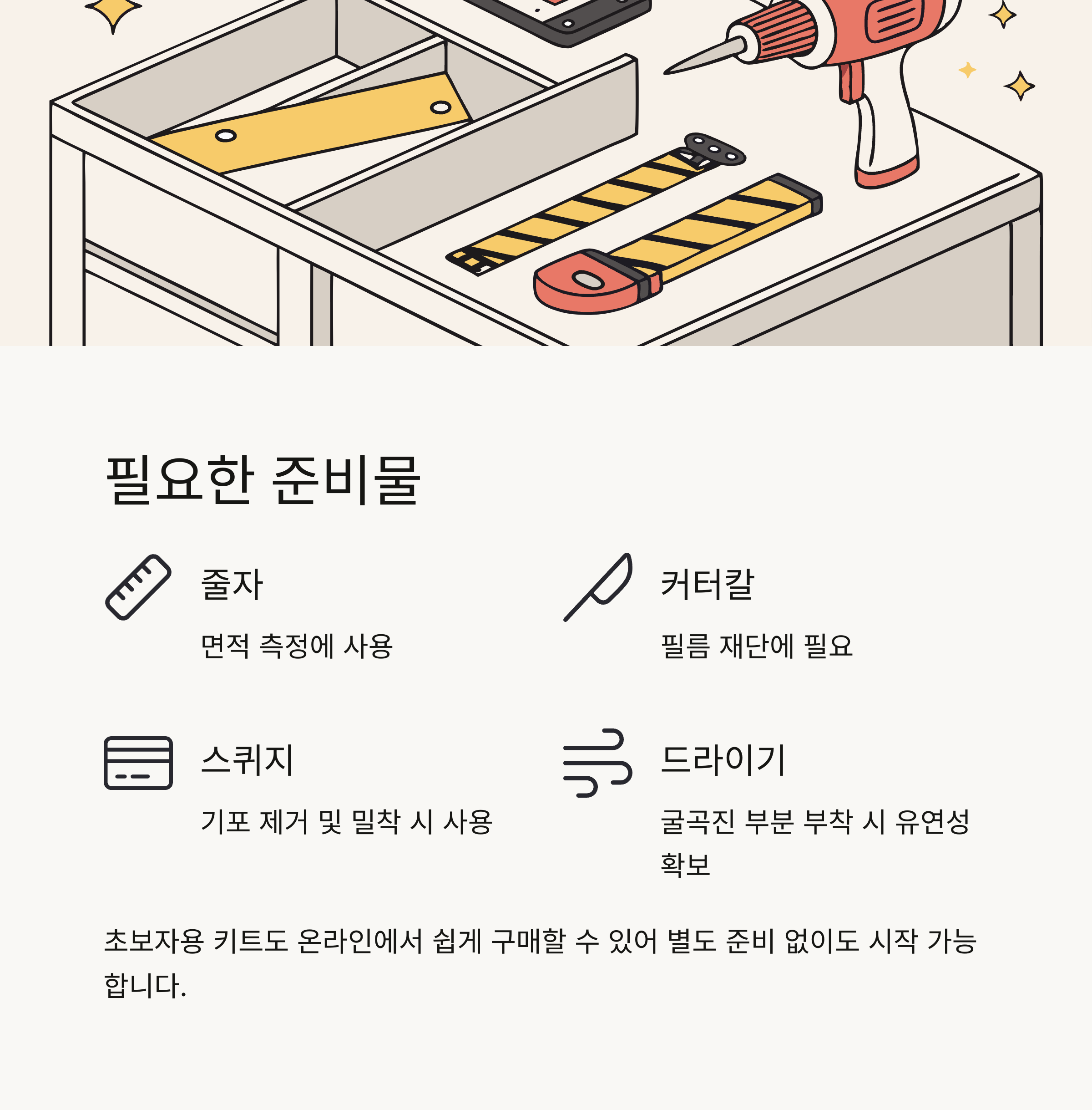 도배필름 시공은 비교적 간단한 준비만으로도 가능합니다.