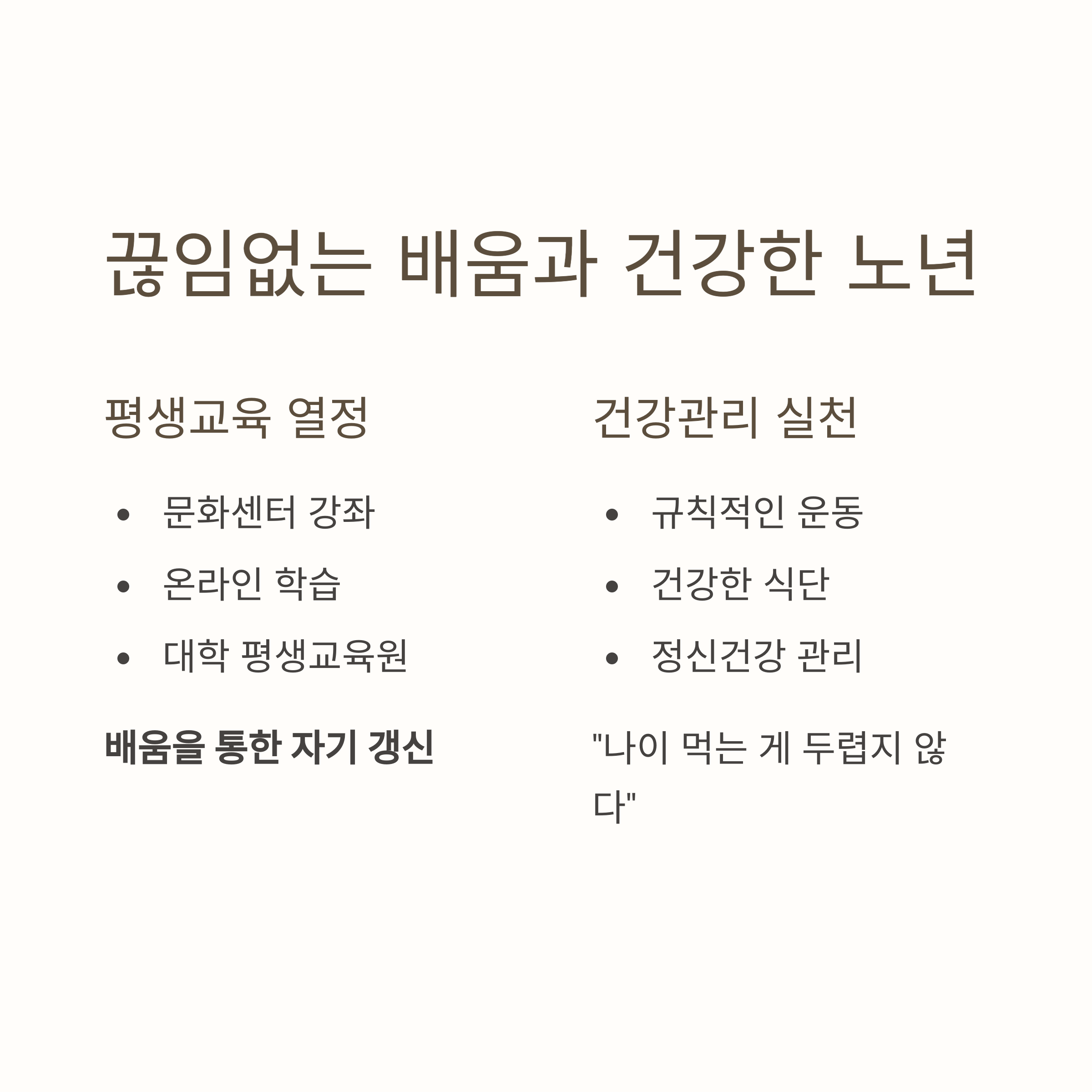 운동, 식단, 정신건강 등 자기 관리를 실천하는 60대가 많아지면서