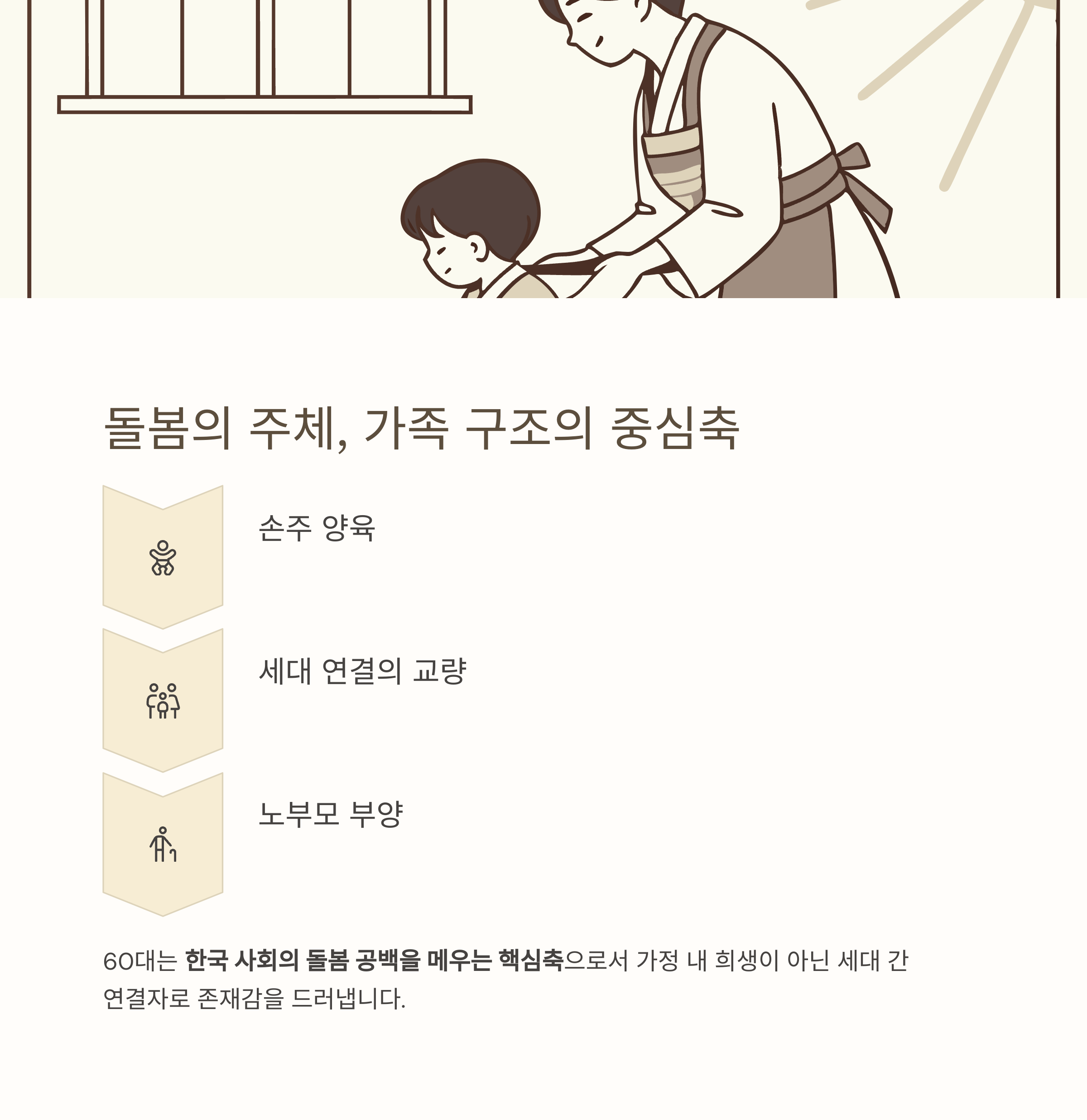 손주 양육, 노부모 부양 등에서 60대는 중심 역할을 합니다.